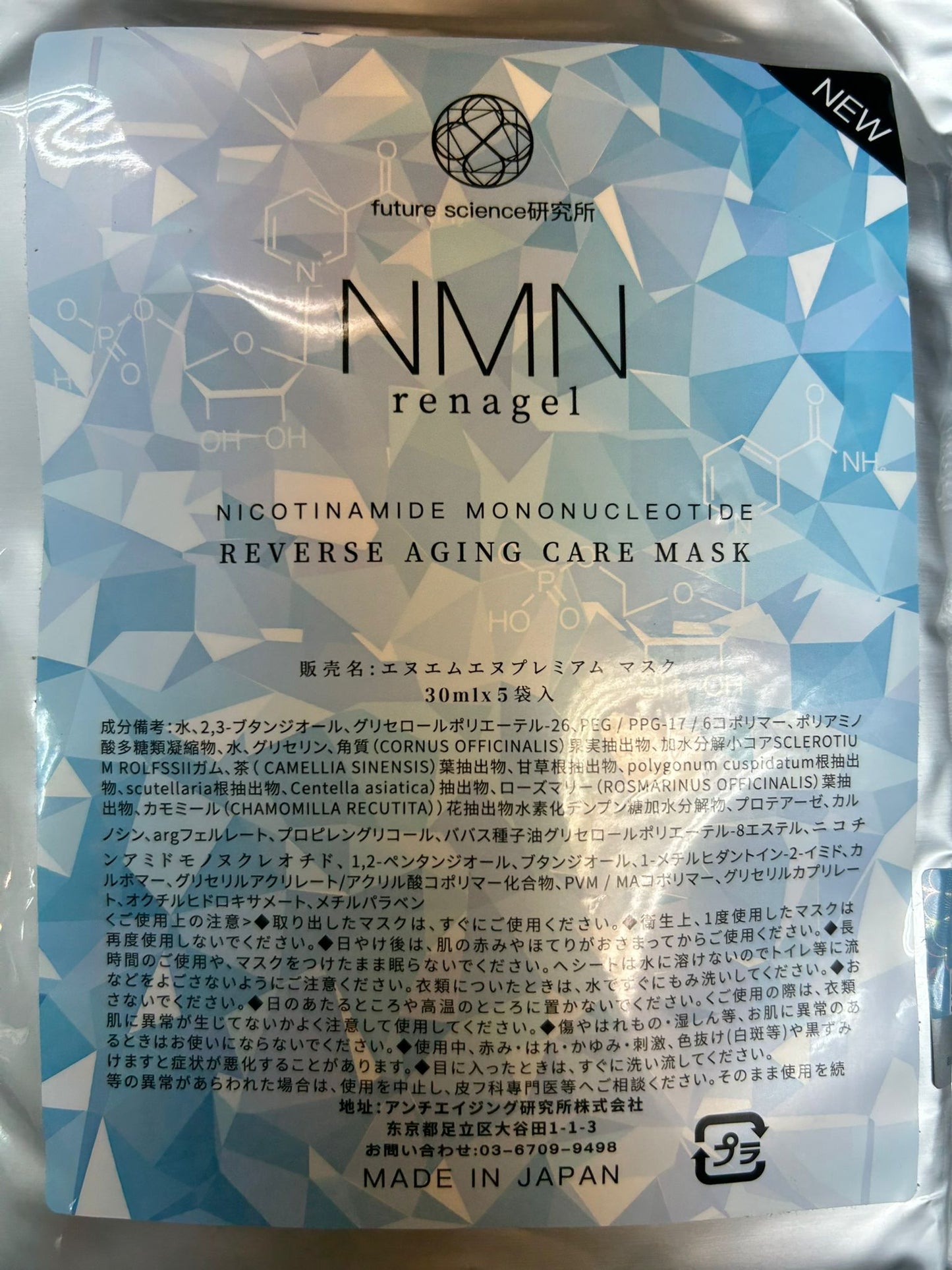 NMN renagel Reverse Aging Care Mask 30ml x 5pcs